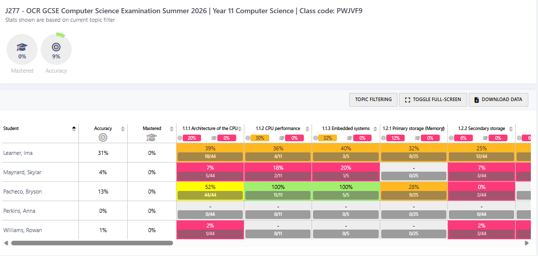 Every class you create in Smart Revise has its own class configuration screen. Once you have selected a class press the "More Actions" then "Configure Class" from the dropdown. You can do various things from the class configuration screen: Class ...