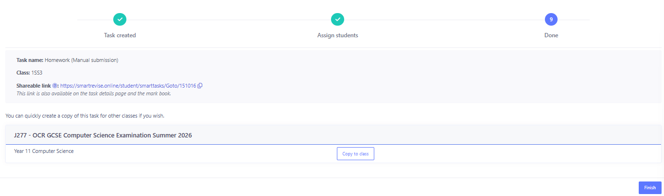 Now your task is created you will see a shareable link that will guide students to the task. You can also copy this task to other classes.