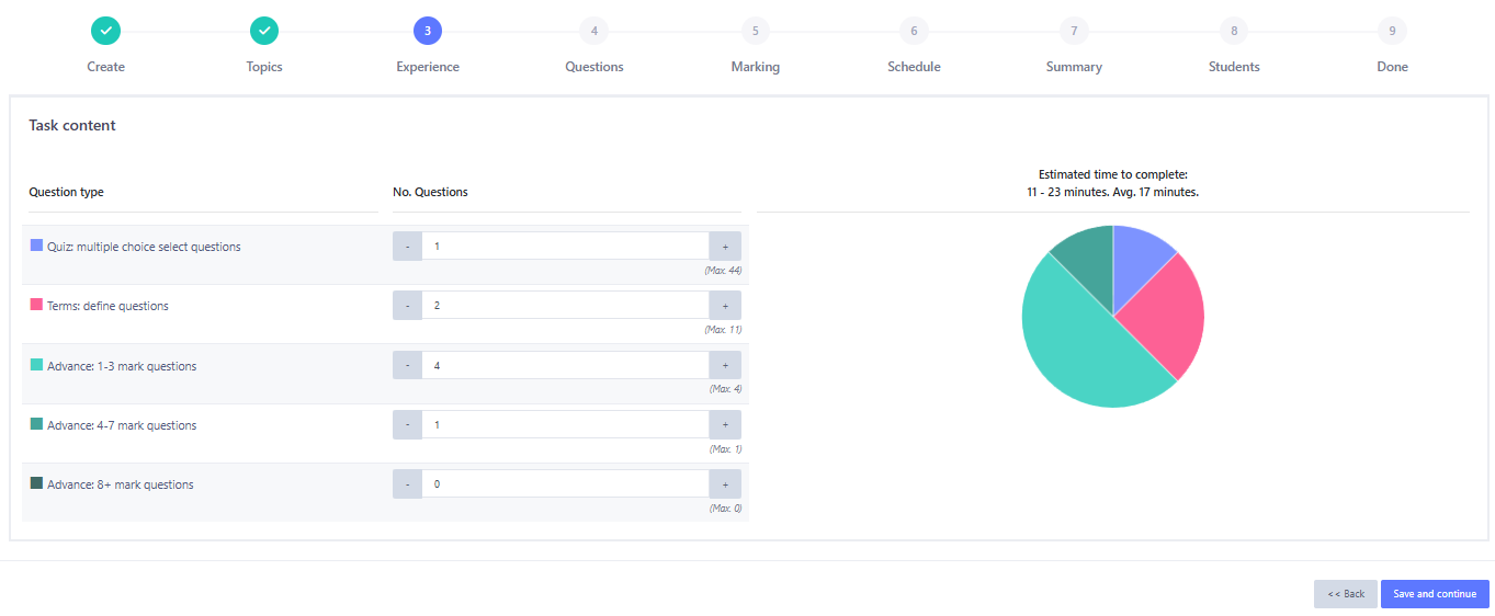 You can mix and match different modes, and question ranges here. As you add each one it will give an estimated time to complete.