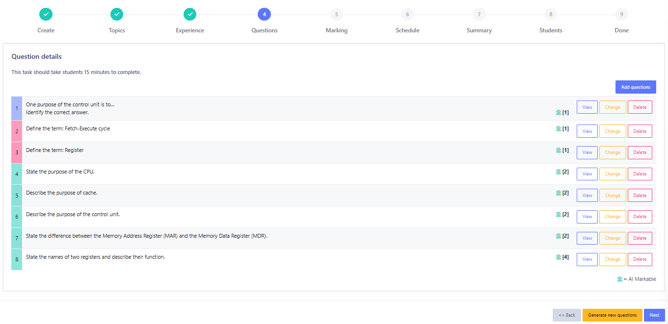 Smart Revise will choose questions for you. If you want to choose specific questions, click change.