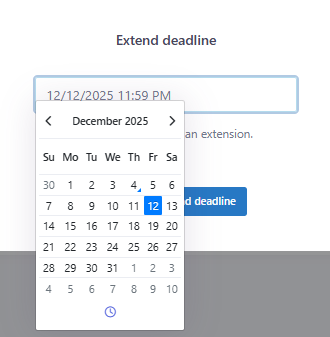 - Choose the date and time you want to extend the deadline to and click "Extend Deadline"
