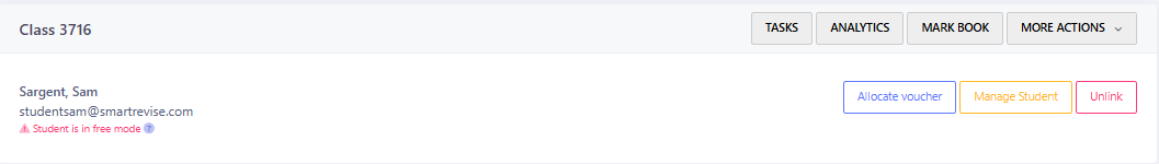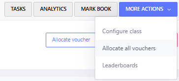 If you have multiple students in your class you can allocate vouchers to all of them by clicking the "Allocate all vouchers" in the "More Actions" dropdown at the top right of the screen.