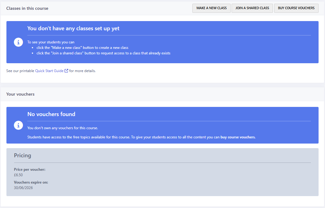 Start by setting up your class if you haven't already. How do I set up a new class? Every class has a six character class code shown on the class management screen. Tell your colleagues the class code. E.g. KABQE6. Your colleague will need to have ...
