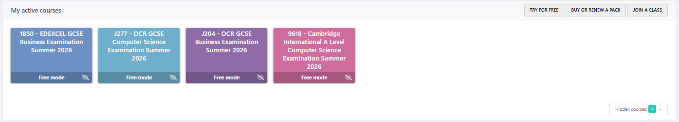 Free mode will remain active on your chosen course until a voucher for that course is purchased and assigned to your Smart Revise account. You'll be able to try all the different modes: