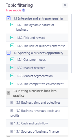 If a teacher has not restricted your topics, use the topic filter to select the content you want to see from what is available in the free mode.