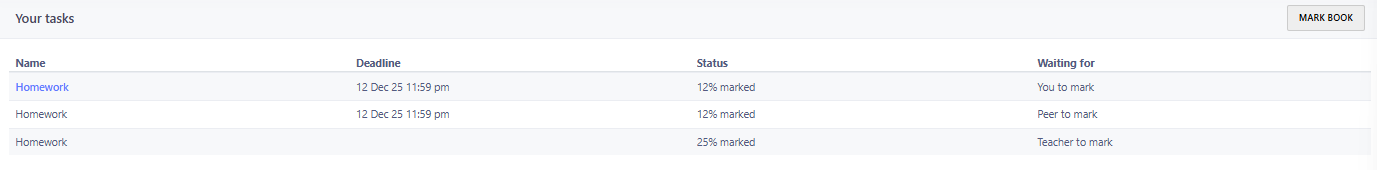 If you have been assigned a task to mark, you will see this in your tasks section: