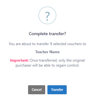 Once transferred for a second time, the teacher account the vouchers were originally transferred to will not have the power to reclaim.