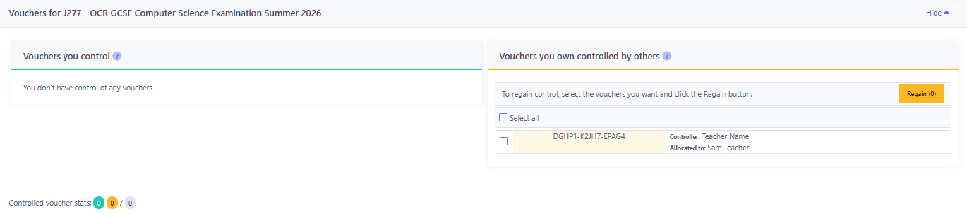 Once you have transferred vouchers to a colleague, they will be able to view them on the My vouchers screen and assign them to students in their classes. If necessary, they will also be able to transfer the vouchers to another teacher account by following the steps above.