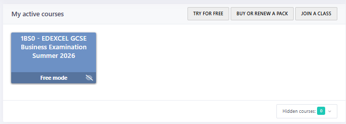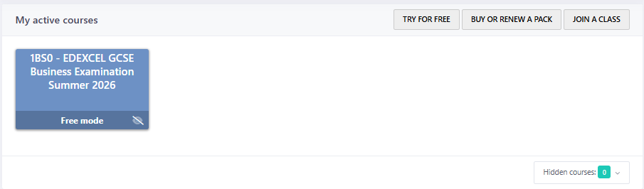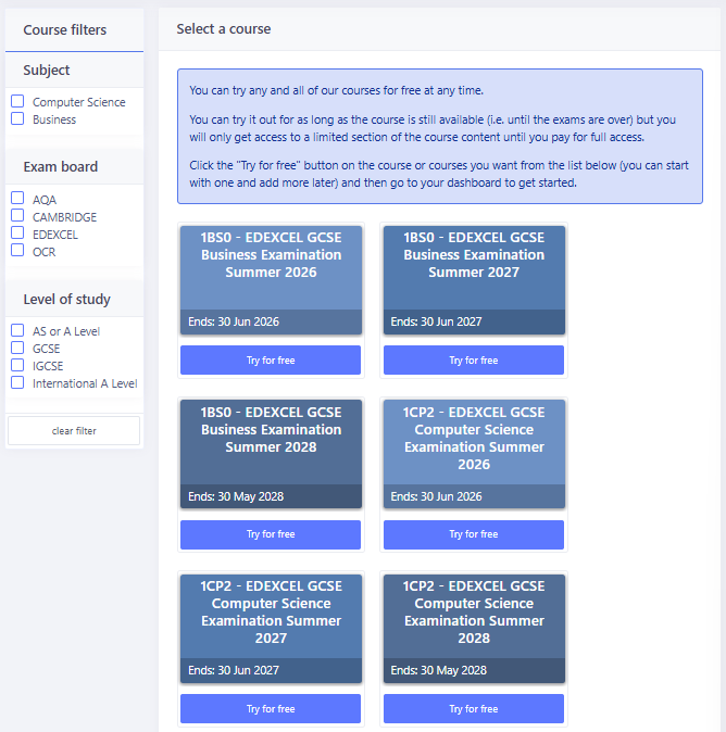 Once you're in student mode, click the Try for free button and select the course(s) you wish to try for free.