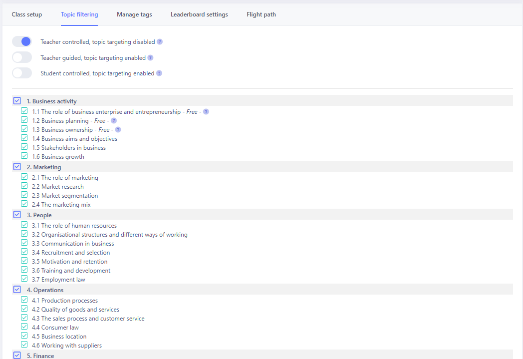 2. Teacher Guided - The teacher can set topic filters, but students can also filter, but only on the topics chosen by the teacher.